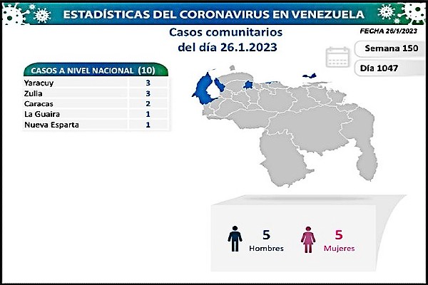 En el día 1047 de la pandemia de la covid-19 este jueves 26 de enero de 2023 por medio de su cuenta en Twitter, la vicepresidenta ejecutiva de la República y presidenta de la comisión responsable de prevenir y atender la enfermedad, Delcy Rodríguez, dio detalles del nuevo balance.