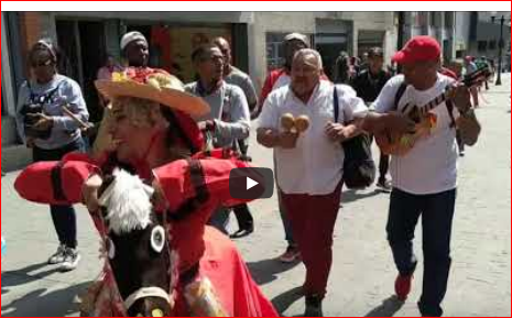 Domingo, 29 de enero de 2023.- Una de estas tardes de enero, en nuestro usual recorrido por el área de la plaza Bolívar de Caracas y sus alrededores, .íbamos de la esquina de Gradillas a Sociedad y casualmente nos topamos con esta Burriquita muy bochinchera, que venía en sentido contrario, con un grupo de amigos, venia gozosa y desordenada y no desaprovechamos la oportunidad para grabarla y mostrarla a aporreadores y aporreadoras.