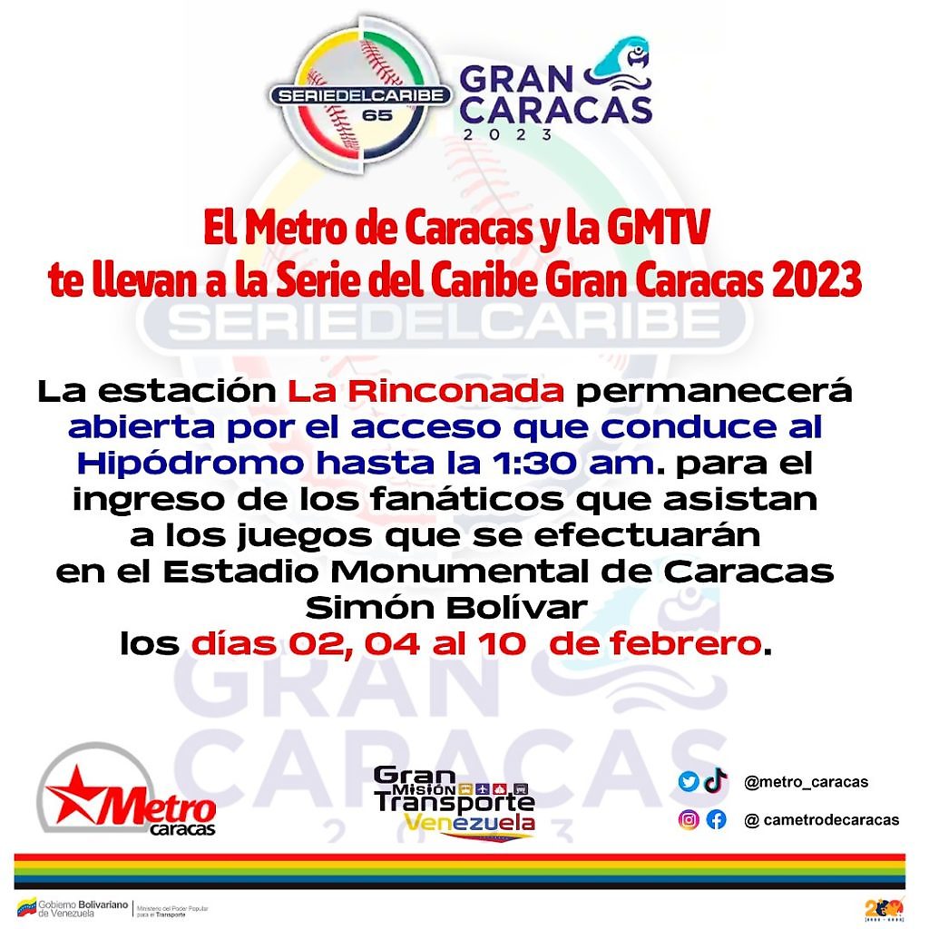 "La #GMTVen y el @metro_caracas la sacan de jonrón en esta #SerieDelCaribe2023 con la activación de las rutas especiales para que toda la fanaticada asista a los encuentros en los estadios en #Caracas y #LaGuaira", señala la publicación.