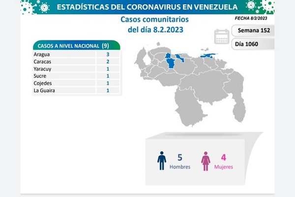 Informó que los casos comunitarios se presentan en las entidades: Aragua (3), Caracas (2), Yaracuy (1), Sucre (1), Cojedes (1), La Guaira (1).