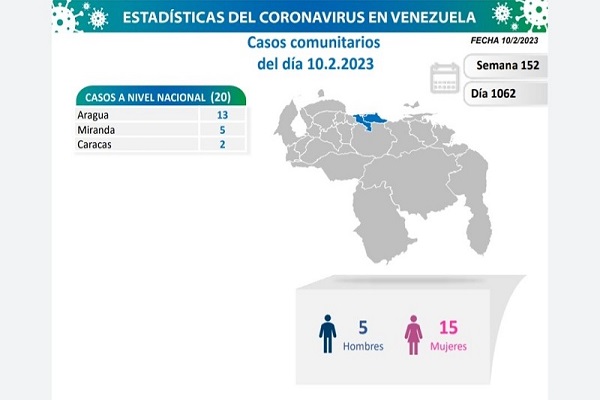 El Vicepresidente Sectorial de Comunicación, Turismo y Cultura, Freddy Ñáñez, compartió en su red social de twitter @luchaalmada: A 1062 días de la pandemia en Venezuela, anunciamos que el país registró 20 nuevos casos de #COVID19, todos de transmisión comunitaria.