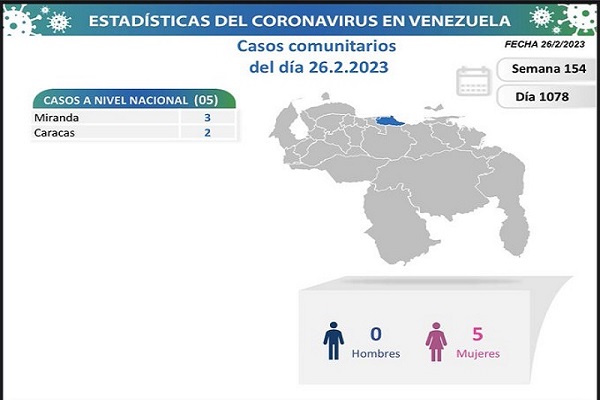 Informó que, los casos comunitarios están ubicados enlos estados Miranda (3) y Caracas (2).