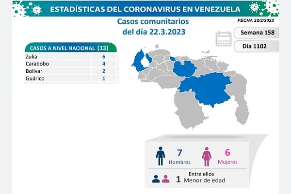A 1102 días de la Pandemia en Venezuela, se registraron 13 nuevos casos de covid-19 en el país, todos de transmisión comunitaria, así lo informó el ministro de comunicación e información, Freddy Ñáñez.