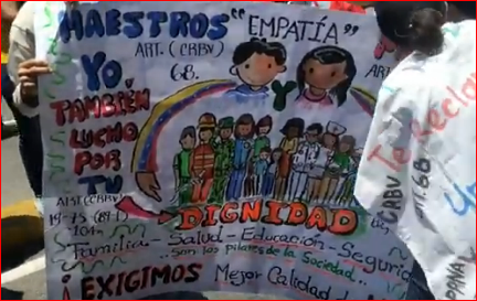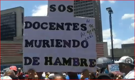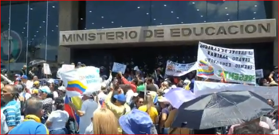 La convocatoria fue para las nueve de la mañana de este lunes 27 de marzo en la esquina del Chorro, en Caracas y se cumplió, de allí los trabajadores del magisterio manifestaron por un ingreso que les proporcione una vida digna, de acuerdo al artículo 91 de la Constitución de la República Bolivariana de Venezuela (CRBV).