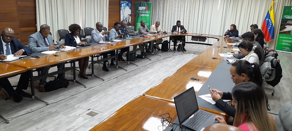 Caracas 31 de marzo de 2023.-La viceministra para Nuevas Fuentes y Uso Racional de la Energía Eléctrica, Tanía Masea, lideró este jueves un encuentro de trabajo con la delegación del Comité Permanente para la Alimentación, Agricultura y Recursos Naturales (FANR) del Foro Parlamentario de la Comunidad de Desarrollo de África Austral para intercambiar conocimientos sobre el uso adecuado de las energías alternativas en los sectores productivos, informó  una nota de Prensa MPPEE/