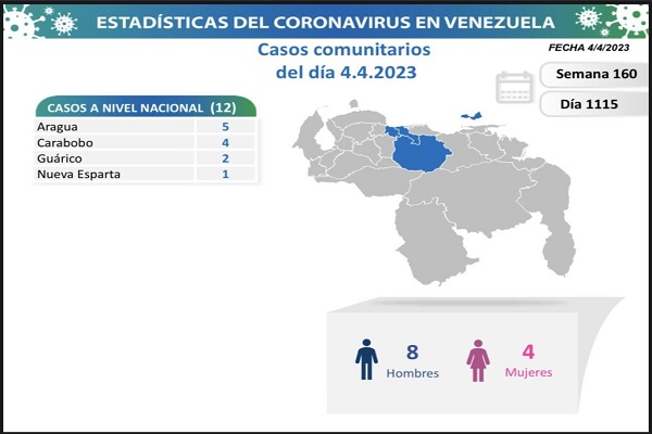 Finalmente indicó que en la semana 160 y día 1.115 de pandemia en Venezuela, estas son sus estadísticas generales: