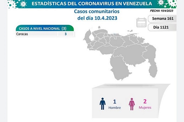 Finalmente indicó que en la semana 160 y día 1.121 de la pandemia en Venezuela, estas son sus estadísticas generales: