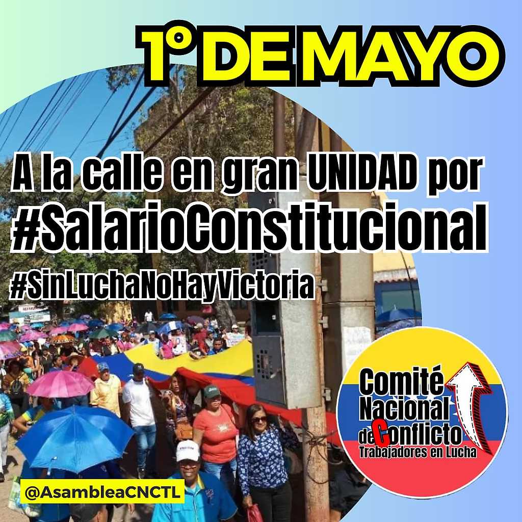 El Comité Nacional de Conflicto de los Trabajadores en Lucha (CNC-TL) ha hecho llegar a los medios de comunicación el siguiente pronunciamiento ante la cercanía del 1º de Mayo y donde se repite la inconstitucional e inconsulta fijación del Salario Mínimo Vital Nacional que establece el Art. 91 del CRBV.