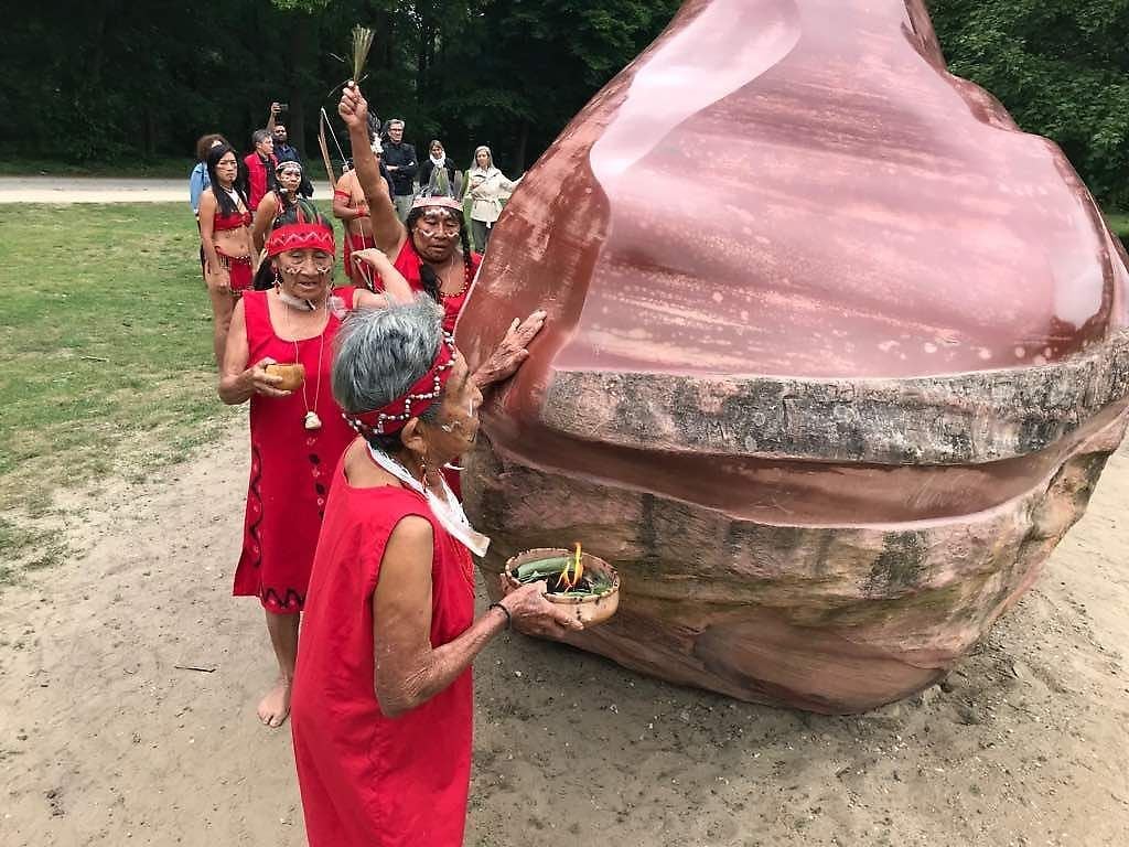 24 de abril de 2023.-Bolívar.- La piedra Kueka o "abuela Kueka", como se le llama amorosamente en la cultura indígena, es una roca sagrada para el pueblo Pemón, de jaspe rojo, con peso de 30 toneladas, oriunda del sur de Venezuela, en el estado Bolívar, específicamente del Parque Nacional Canaima, municipio Gran Sabana, informó Prensa Gobernación de Bolívar.