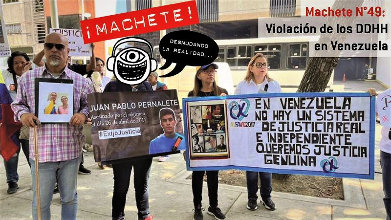El noticiero “¡Machete!” es un programa semanal nacido en la ciudad de Caracas, Venezuela, un país golpeado por un despiadado saqueo que protagonizan sus élites económicas y políticas, en complicidad con altos intereses transnacionales. En este proceso de empobrecimiento generalizado, de éxodo masivo de las y los venezolanos fuera de sus fronteras y de restricción cada vez mayor de las libertades más elementales, «¡Machete!» se plantea como una respuesta ante esta realidad en la que el ejercicio de la palabra compartida es ya, de por sí, un acto de resistencia. El equipo que impulsa esta experiencia comunicacional milita a favor de un cambio radical y sistémico en Venezuela y en el mundo, es decir de nuevas formas de organización social que no se basen en las relaciones de dominación existentes ni en la autoridad de los estados y de los partidos.