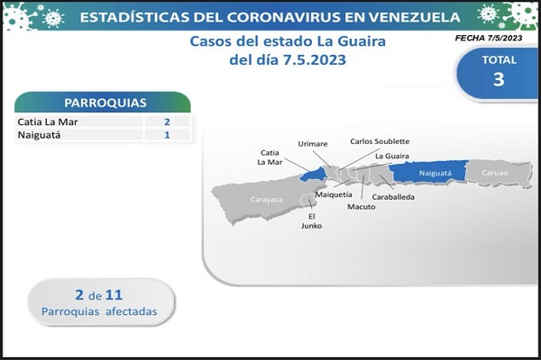 Rodríguez, señaló que todos los nuevos casos se ubicaron en el Estado La Guaira, específicamente en las parroquias: Catia La Mar (2), Naiguatá (1).