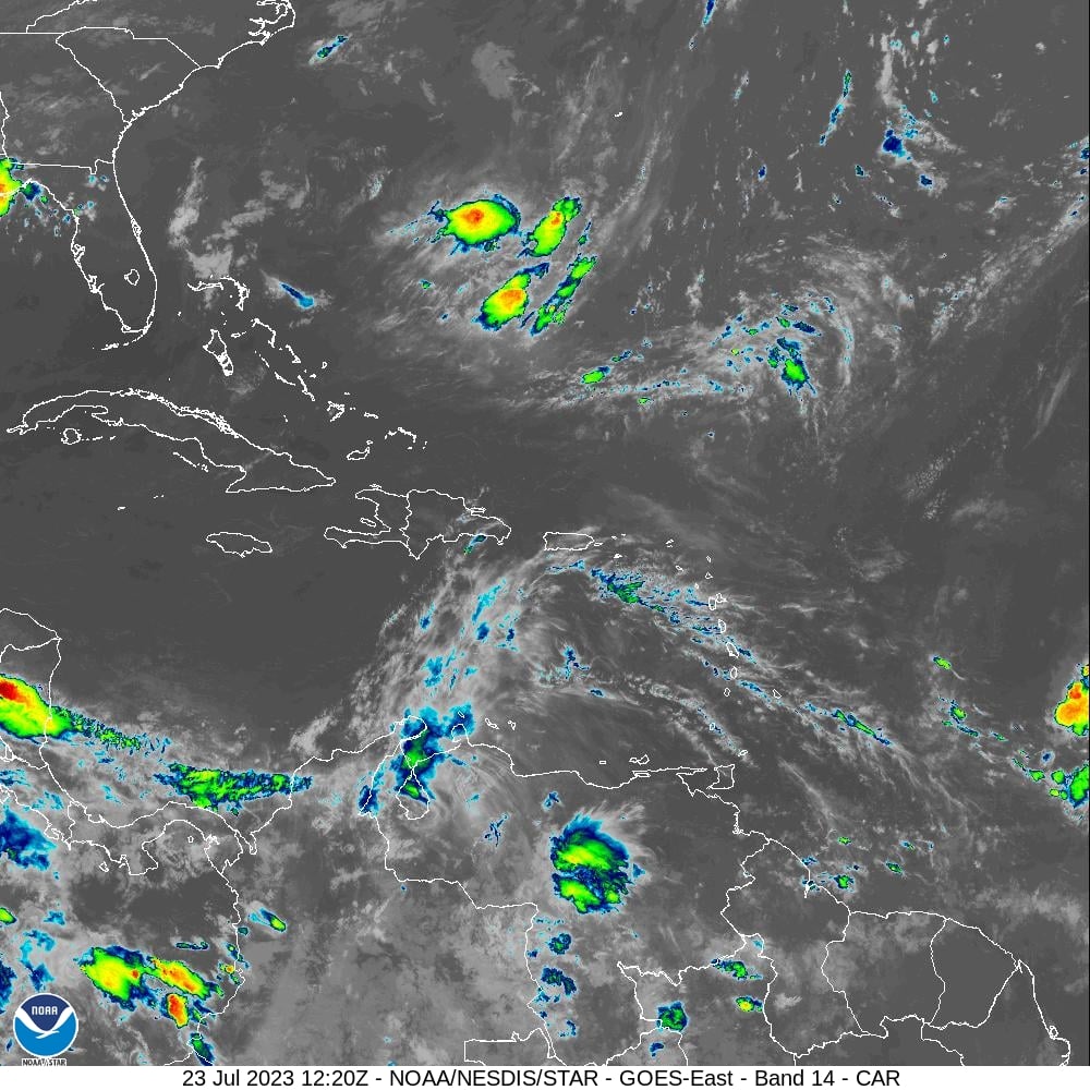 23 de julio de 2023.- Se prevé zonas nubladas con lluvias o chubascos, algunos acompañadas de actividad eléctrica y ocasionales ráfagas de viento en áreas del Esequibo, Bolívar, Amazonas, los Andes y Zulia; por otra parte, áreas nubladas con precipitaciones de intensidad variable en zonas de Falcón, Lara y Mérida; el resto del territorio nacional con nubosidad fragmentada.