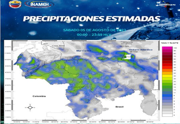 El Instituto Nacional de Meteorología e Hidrología (Inameh), prevé para este sábado en el territorio nacional áreas nubladas y precipitaciones de intensidad variable, algunas cargadas de actividad eléctrica, con mayor intensidad en horas de la tarde y noche.