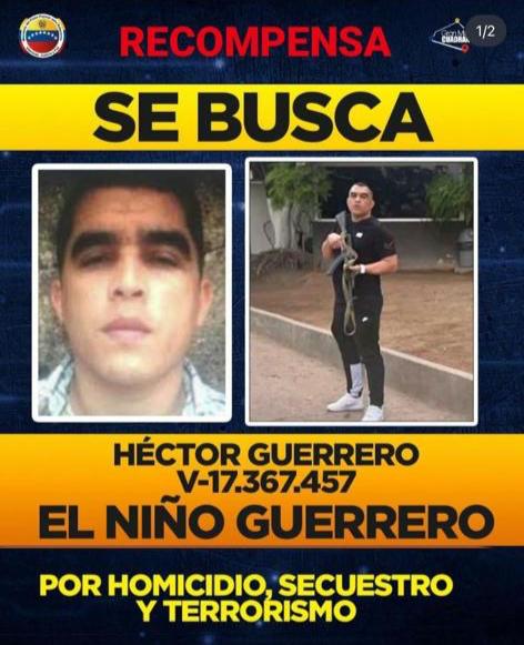 Mediante dos carteles que publicó en su sitio de Instagram el Cicpc, informan que “los órganos de seguridad ciudadana buscan a Héctor Guerrero; alias “El Niño Guerrero”, por su participación en múltiples delitos contra las personas y terrorismo”.