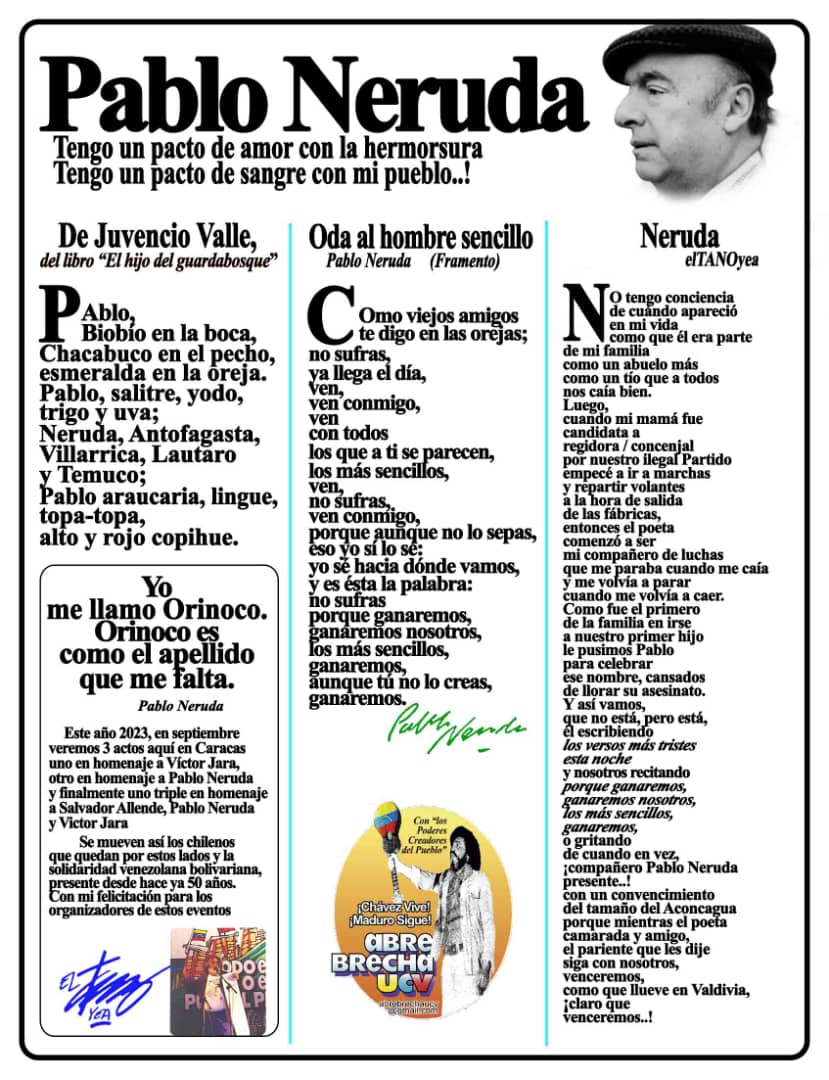 Hoy los asesinos de Neruda están en el basurero de la historia, mientras el poeta sigue viviendo en el corazón de la gente de buena voluntad de este planeta
