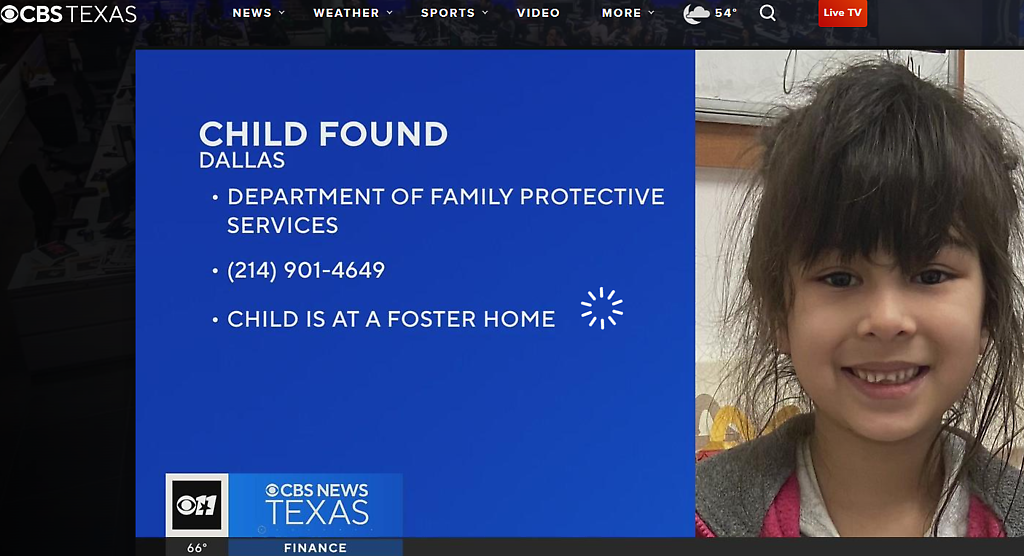 El Departamento de Servicios Familiares y de Protección de Texas compartió en una publicación en las redes sociales que una niña que dijo a las autoridades que se llamaba Alejandra fue “dejada” en un hospital de Dallas el domingo.