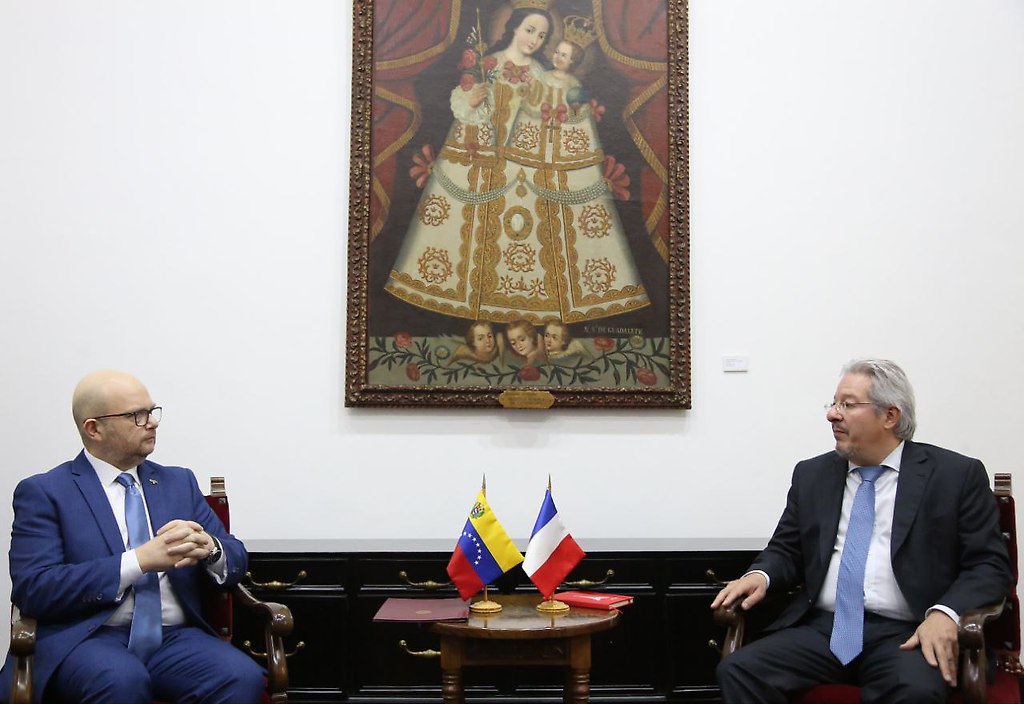 16-12-23.-Desde la Casa Amarilla Antonio José de Sucre, el viceministro para Europa del Ministerio del Poder Popular para Relaciones Exteriores, Franklin Ramírez, entregó este viernes una nota de protesta ante el representante de la Embajada de Francia en Caracas, por el contenido de una conversación telefónica entre autoridades de la nación europea y Guyana en la que “se hacen apreciaciones erradas sobre la controversia por el Esequibo”.