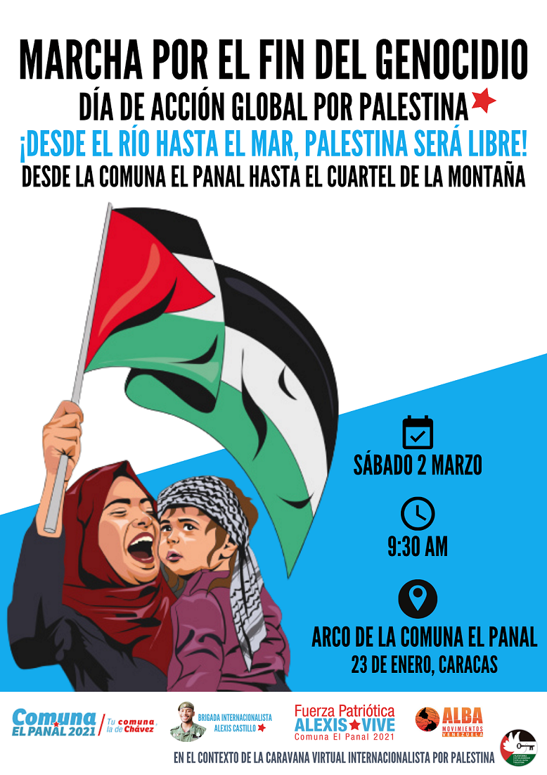 El sábado 2 de marzo, la combativa parroquia 23 de Enero será escenario de la movilización del pueblo organizado por Palestina.