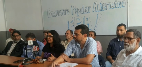 El Encuentro Popular Alternativo es una opción popular del pueblo trabajador, de las venezolanas, de los venezolanos que se dirigen hoy al país...es una articulación de partidos entre los que están: el Movimiento Popular Alternativo, el Partido Comunista de Venezuela, el PPT-APR, Marea Socialista y el PSL