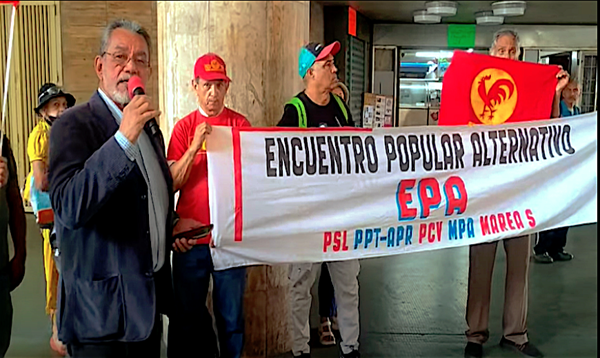 Viernes, 22 de marzo de 2024.- "La Patria sigue en manos de quienes la han destruido" manifestó‚ Manuel Isidro Molina del Movimiento Popular Alternativo‚ MPA, en la protesta realizada el pasado miércoles 13‚ frente al Consejo Nacional Electoral en Caracas‚ CNE, continuó Molina: y nos referimos al gobierno y nos referimos a la oposición.