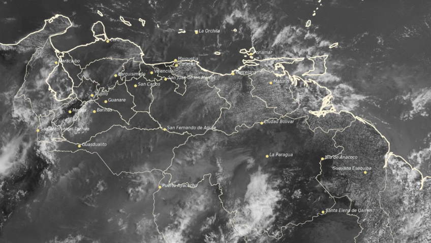 19 de abril de 2024.- Durante la mañana, prevalecerán zonas nubladas con precipitaciones de intensidad variable en la Guayana Esequiba, Delta Amacuro, Sucre, Monagas, Anzoátegui, Bolívar, Amazonas, Apure, Trujillo y Zulia; el resto del país parcialmente nublado, en horas de la tarde y noche se prevé un incrementado de la cobertura nubosa, generando lluvias o chubascos, ocasionales descargas eléctricas y eventuales ráfagas de viento, siendo con mayor intensidad y frecuencia en áreas de la Guayana Esequiba, Delta Amacuro, Sucre, Monagas, Anzoátegui, Bolívar, Amazonas, los Andes y Zulia.