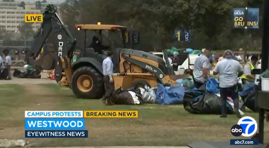 WESTWOOD, LOS ÁNGELES 2 de mayo de 2024 ) -- Un campamento propalestino en el campus de UCLA fue despejado en gran medida por agentes del orden el jueves por la mañana, lo que resultó en el arresto de manifestantes que permanecieron allí durante horas después de que se les ordenó desalojar, informó KABC Los Angeles.