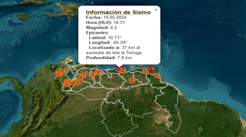 19 de mayo de 2024.- Este domingo, un sismo de 4.2 de magnitud, sacudió la costa oriental de Venezuela, según informó oficialmente la Fundación Venezolana de Investigaciones Sismológicas (Funvisis).