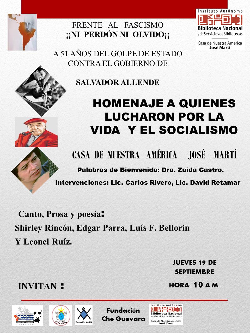 Acto para rendir homenaje a Allende, Víctor Jara y Neruda a 51 años del golpe en Chile 19/Sept en Caracas