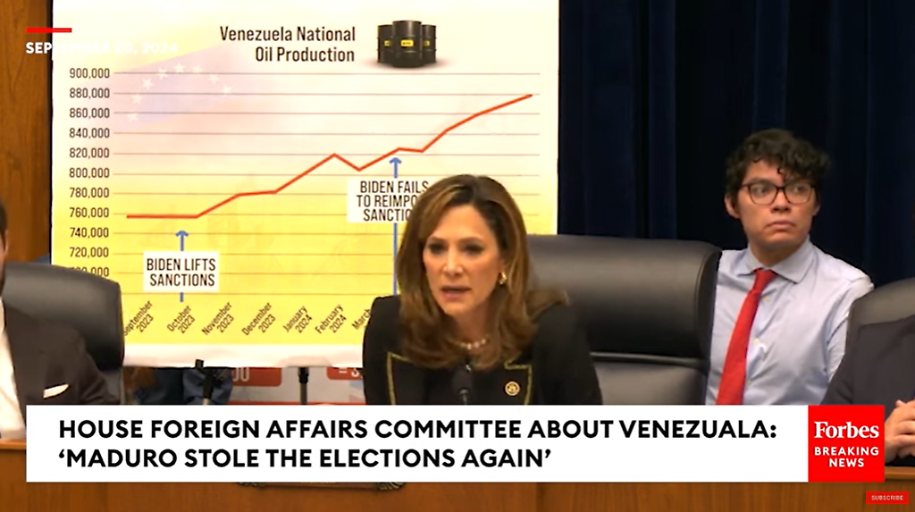 20 de septiembre de 2024.-La representante María Salazar (republicana por Florida) criticó al ex embajador de Estados Unidos en Nicaragua por la política de petróleo y gas en Venezuela en una audiencia del subcomité de Asuntos Exteriores de la Cámara de Representantes el viernes, informó La Colina en una nota de prensa.