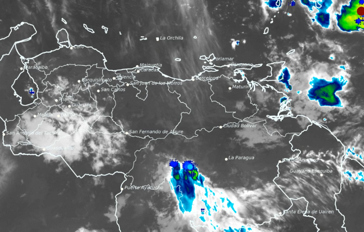 Después del mediodía, se estima un aumento progresivo de la cobertura nubosa con lluvias, chubascos y descargas eléctricas especialmente en Bolívar, Amazonas, oeste de Sucre, Monagas, Anzoátegui, Miranda, Distrito Capital, Aragua, Carabobo, Falcón, oeste de Apure, Barinas, Andes y Zulia.