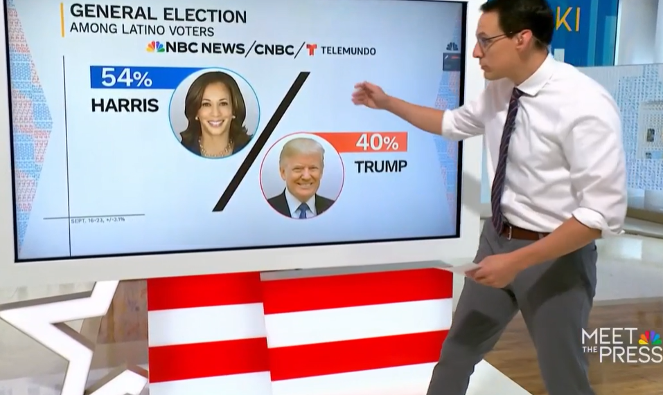 1ero de octubre de 2024.-La vicepresidenta Kamala Harris lidera al expresidente Donald Trump entre los votantes latinos. Pero esa ventaja ha disminuido al nivel más bajo de los demócratas en los últimos cuatro ciclos presidenciales, según una nueva encuesta nacional de NBC News/Telemundo/CNBC.