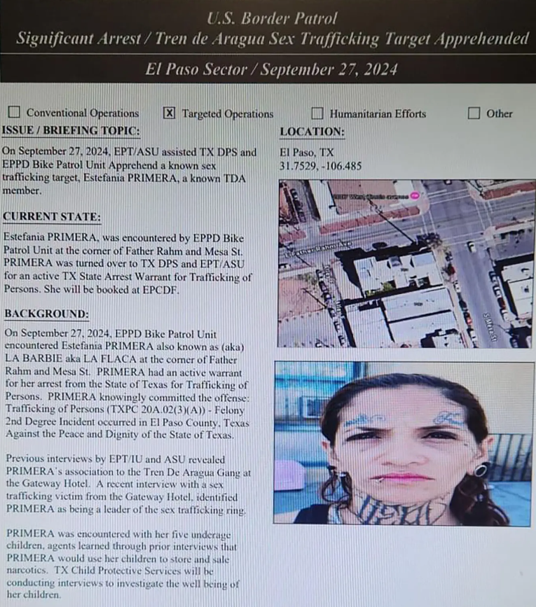 Un memorando filtrado de la Patrulla Fronteriza decía que las autoridades capturaron a Estefanía Primera en El Paso, Texas, el 27 de septiembre, según El Correo de Nueva York.