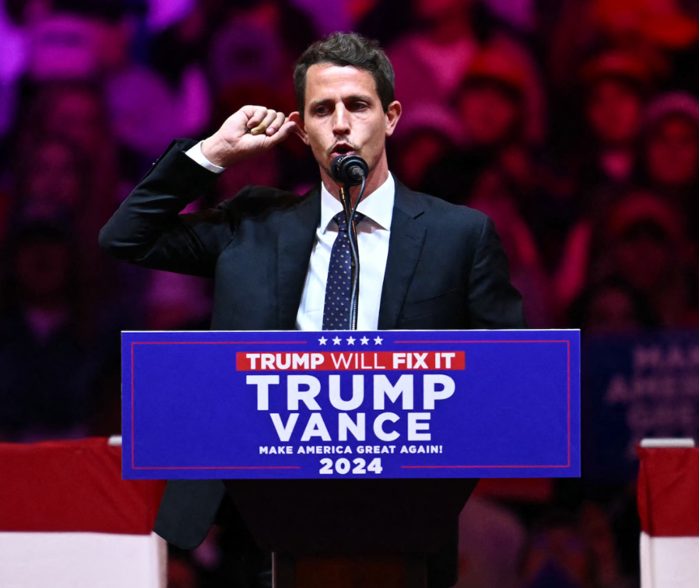 El cómico Tony Hinchcliffe estuvo entre los oradores en el Madison Square Garden de Nueva York el domingo. También hizo una serie de chistes que se apoyaban en estereotipos racistas.