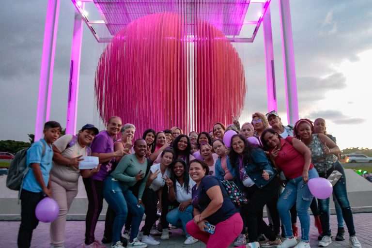 26 de noviembre de 2024.- Como una señal de la lucha contra la violencia hacia la mujer, la esfera Caracas, del artista venezolano Jesús Soto, ubicada en la autopista Gran Cacique Guaicaipuro de la capital, este lunes 25 de noviembre se iluminó de violeta.