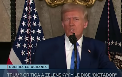 Jueves, 20 de febrero de 2025.- Así dijo en redes sociales el presidente Trump, luego de que su homólogo ucraniano, Volodymyr Zelensky, asegurara que Trump "vive en una burbuja de desinformación" tras la falsa aseveración del estadounidense de que Ucrania inició la guerra con Rusia.