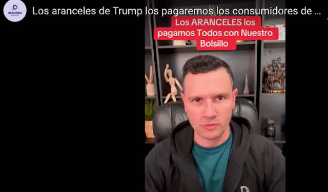 Recordemos que, las empresas importadoras y prácticamente todas las compañías norteamericanas son importadoras, pues sencillamente nunca van a perder su dinero, estas empresas sencillamente, van a trasladar el 25% que están pagando por la importación de los productos de estos otros países, la van a trasladar a los precios de venta y al final esos productos de consumo, bueno, lo vamos a pagar todos nosotros, usted, yo y todas las personas en los Estados Unidos, pues un 25% aumentado, dinero que está saliendo de nuestro bolsillo.