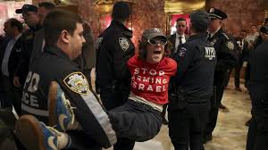 La policía de Nueva York detuvo a 98 manifestantes del grupo Voz Judía por la Paz en el vestíbulo de la Torre Trump este jueves 13 de marzo. Los arrestos se produjeron después de que los manifestantes se negaran a abandonar el atrio público del edificio ubicado en la Quinta Avenida de Manhattan. Los detenidos enfrentan cargos de allanamiento, obstrucción y resistencia al arresto, según informaron las autoridades policiales.