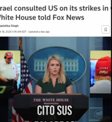 La Casa Blanca no solamente no se negó a condenar los ataques de Israel, aprobó y justificó ese ataque son declaraciones de la misma portavoz de Trump, de Caroline Libet, dijo en Fox News: Israel tiene derecho a tomar las medidas necesarias para garantizar la liberación de sus rehenes.