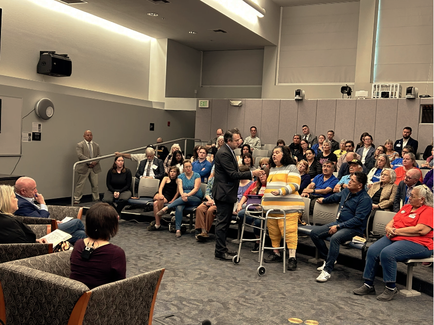 Votantes expresaron este viernes su repudio por los despidos masivos, el desmantelamiento del Departamento de Educación y los posibles recortes al programa de cuidado médico impulsados por el presidente de EE.UU., Donald Trump, durante una asamblea pública en Tucson (Arizona).