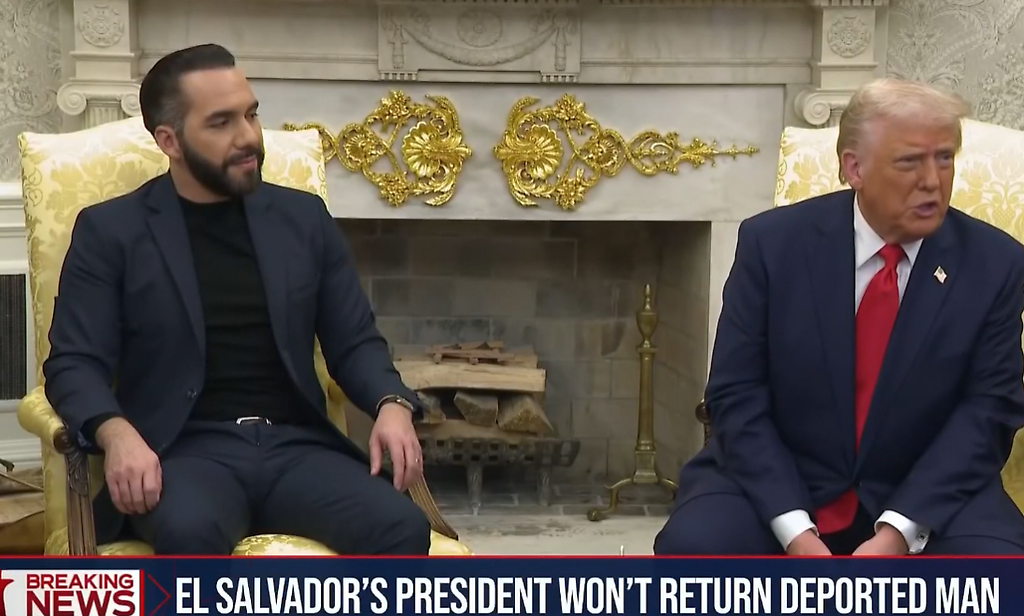 "¿Cómo puedo devolverlo a Estados Unidos? ¿Como si lo introdujera de contrabando?", preguntó Bukele, sentado junto a Trump en el Despacho Oval, cuando le preguntaron si devolvería a Kilmar Ábrego García. "Por supuesto que no lo voy a hacer. La pregunta es absurda".