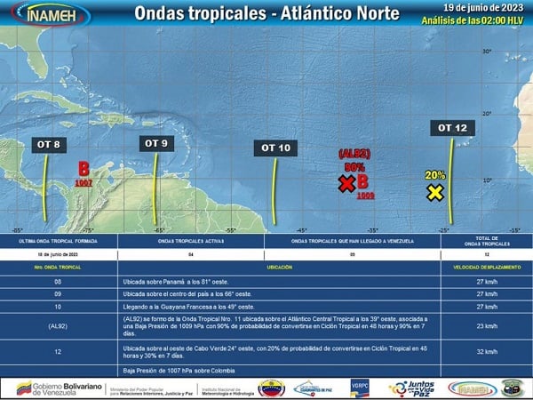 “Desde el Instituto Nacional de Meteorología e Hidrología llevamos un monitoreo y un seguimiento muy detallado de las ondas tropicales y su posible fortalecimiento en el camino hacia convertirse en huracanes. Contamos con un equipo de científicos e investigadores de alto nivel que monitorean tanto el tiempo como el clima. Usamos tecnología de alto nivel para realizar este monitoreo las 24 horas, para la protección del pueblo venezolano”, destacó Zambrano.