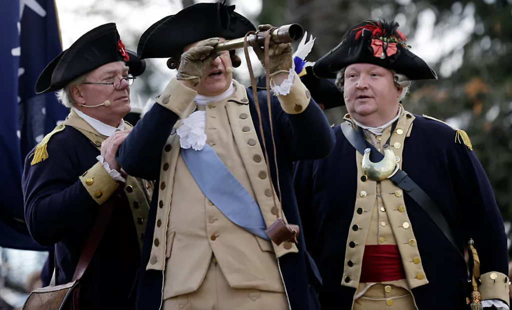Una recreación de 2014 del cruce del río Delaware por parte de George Washington en Navidad de 1776.