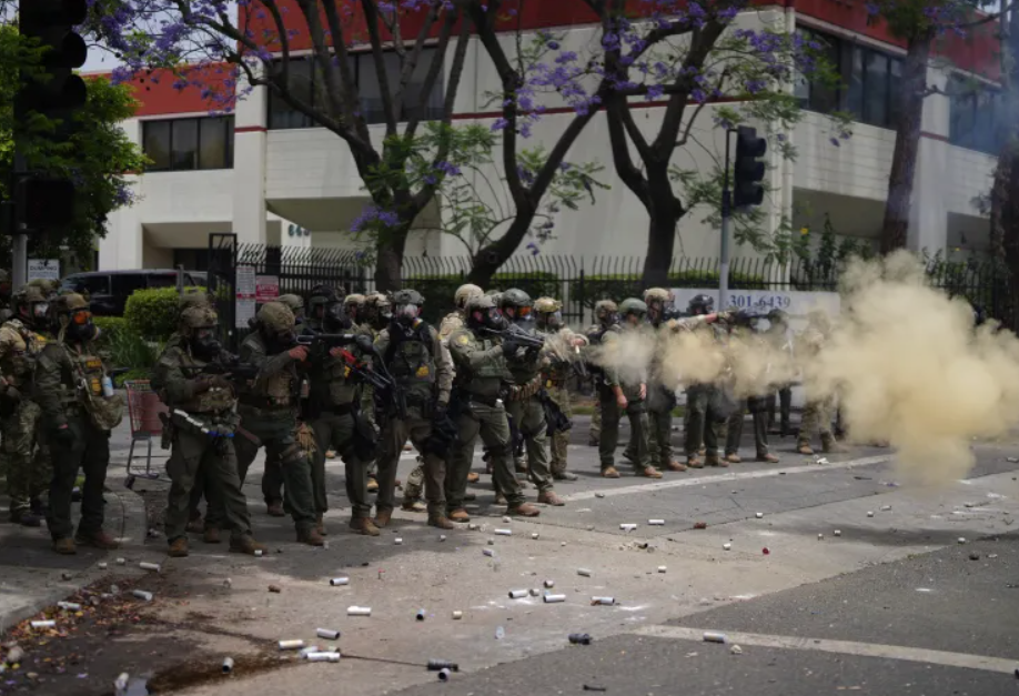 7 de junio de 2025.-Las autoridades estadounidenses extendieron su operativo antiinmigratorio en el área de Los Ángeles, California, por segundo día consecutivo, tras las protestas en un centro de detención federal, que fueron reprimidas con gases lacrimógenos y granadas aturdidoras por la policía, Informó Aljazeera.com.