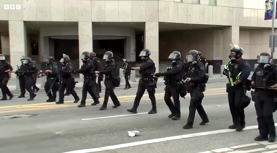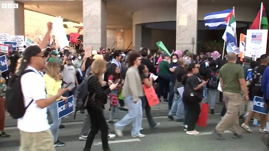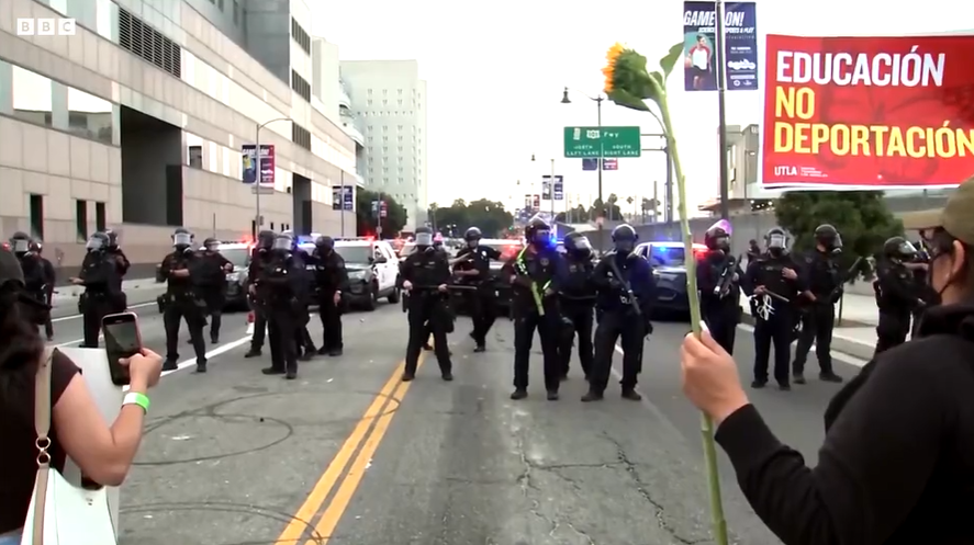 Un comunicado de prensa de la Casa Blanca declaró: «En los últimos días, turbas violentas han atacado a oficiales del ICE y agentes federales encargados de hacer cumplir la ley que realizan operaciones básicas de deportación en Los Ángeles, California.