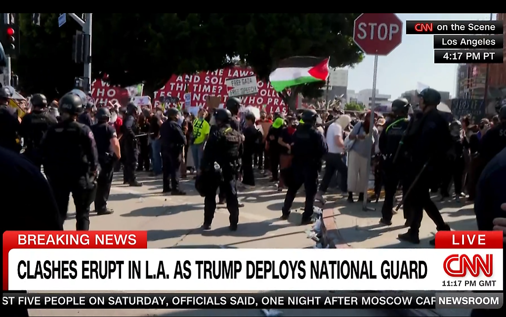 "Excelente trabajo de la Guardia Nacional en Los Ángeles después de dos días de violencia, enfrentamientos y disturbios", escribió Trump.