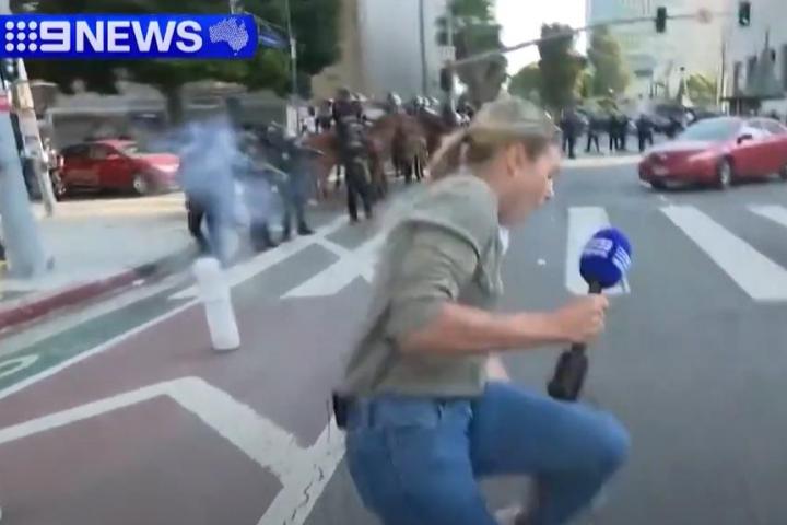 Lauren Tomasi, corresponsal en Estados Unidos de la australiana Nine News, estaba relatando los disturbios en Los Ángeles por las políticas antimigratorias de Donald Trump cuando uno de los policías desplegados en la ciudad le apuntó directamente a ella y a su cámara y les disparó una bala de goma. Enseguida, Tomasi se llevó la mano a la pierna en una muestra visible de dolor para luego alejarse lo máximo posible del lugar entre quejas.