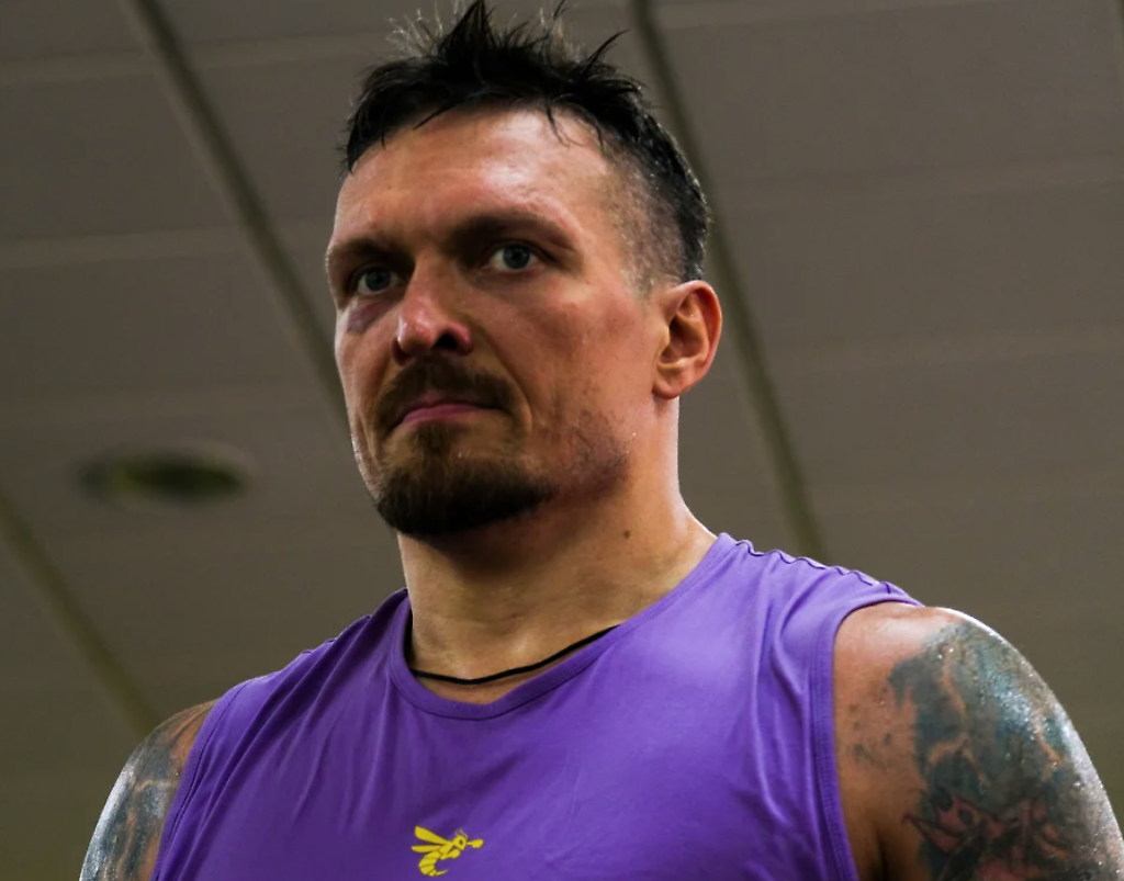"Y cuando venga en secreto, que viva en algún lugar de Obolon o Troyeshchyna (los distritos de Kiev), donde se están bombardeando casas y edificios residenciales… Entonces entenderá lo que está pasando". Nacido en Simferopol, Crimea, Usyk había estado viviendo en las afueras de Kiev, pero estaba fuera del país, en Londres, filmando secuencias para un videojuego cuando Rusia lanzó su invasión a gran escala de Ucrania en 2022. Cuando los tanques rusos se acercaron a Kiev, regresó a su país de origen y se unió a las Fuerzas de Defensa Territorial que defendían la capital.