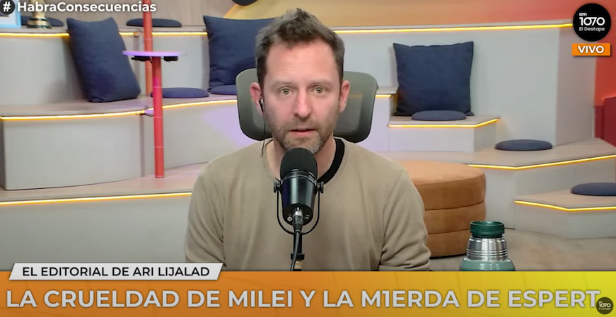 Sábado, 19 de julio de 2025. Milei tiene un discurso nazi, todo aquel que no este de acuerdo con él, hay que eliminarlo expresó al inicio de su editorial para El destape, Ari Lijalad y señala que hay una normalización en muchos medios del discurso del gobierno de Milei.