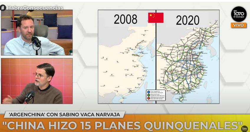 Jueves, 14 de agosto de 2025. Muy interesante el video desarrollado por El Destape TV, de Argentina donde Sabino Vaca Narvaja, entrevistado por Ari Lijalad y un panel de colaboradores, donde se adentra en un análisis de la economía china y de los logros que han alcanzado en los últimos 55 años.