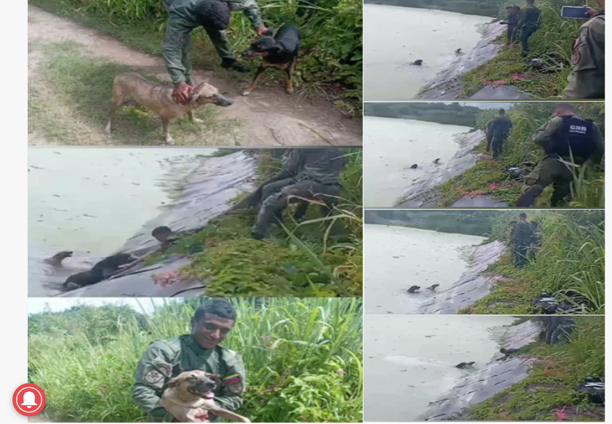 Dos perritos que recorrían las inmediaciones de una laguna artificial en la Refinería de Puerto La Cruz, en el estado Anzoátegui, cayeron al agua y tras intentar salir por sus propios medios y no lograrlo, fueron rescatados por efectivos de la Guardia Nacional Bolivariana.